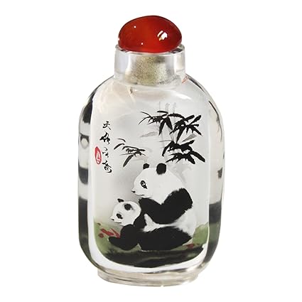 Ancient Gift Handicraft Snuff Bottle Inside Painted Double Deck With Panda